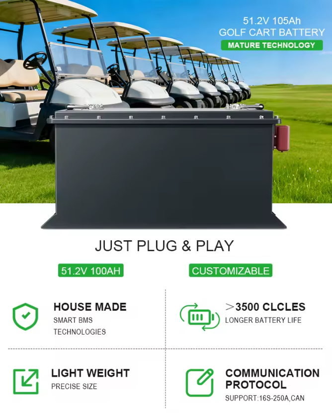 OEM ODM LiFePO4 Wysokiej pojemności 51.2v 105ah MAX BMS 200A Golf Cart Bateria Elektryczna Bateria litowo-jonowa